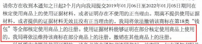 同時(shí),國家知識產(chǎn)權局新的撤三答辯通知書(shū)也明確新增了一句話(huà)“使用證據材料能夠證明在部分核定使用商品上使用的,我局將依法維持該商標在部分商品上的注冊,撤銷(xiāo)在其他商品上的注冊”。在官方通知中明確聲明只保留提供了使用證據的商品。